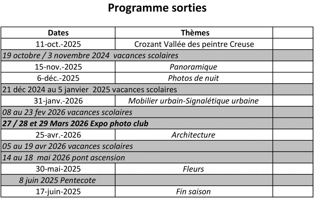 - Organiser/planifier 5 sorties thématiques dans l’année (macro, monuments, eau, montagne…)